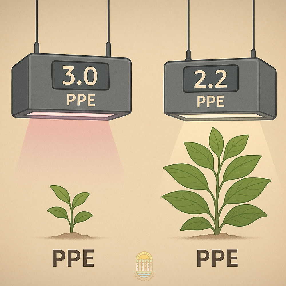Этот параметр обозначается аббревиатурой PPE и отражает количество микромолей фотонов PAR, полученных с 1 джоуля (Дж) электроэнергии.