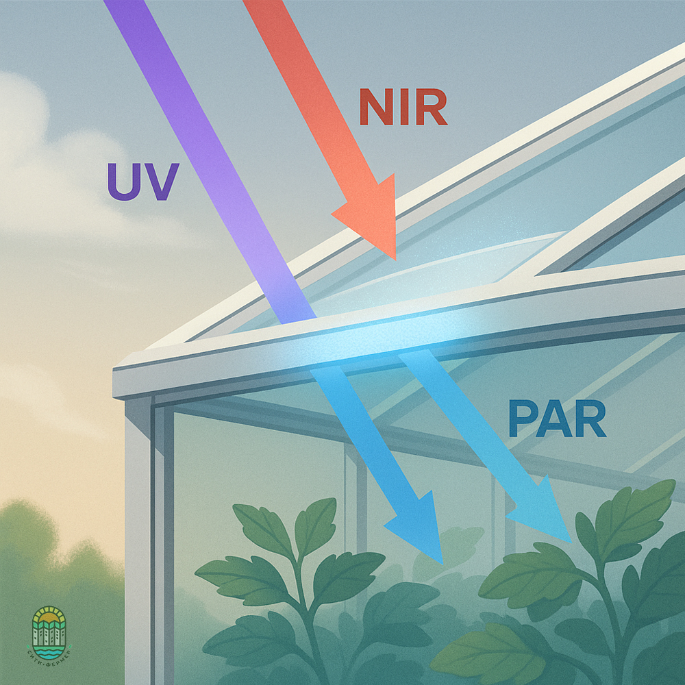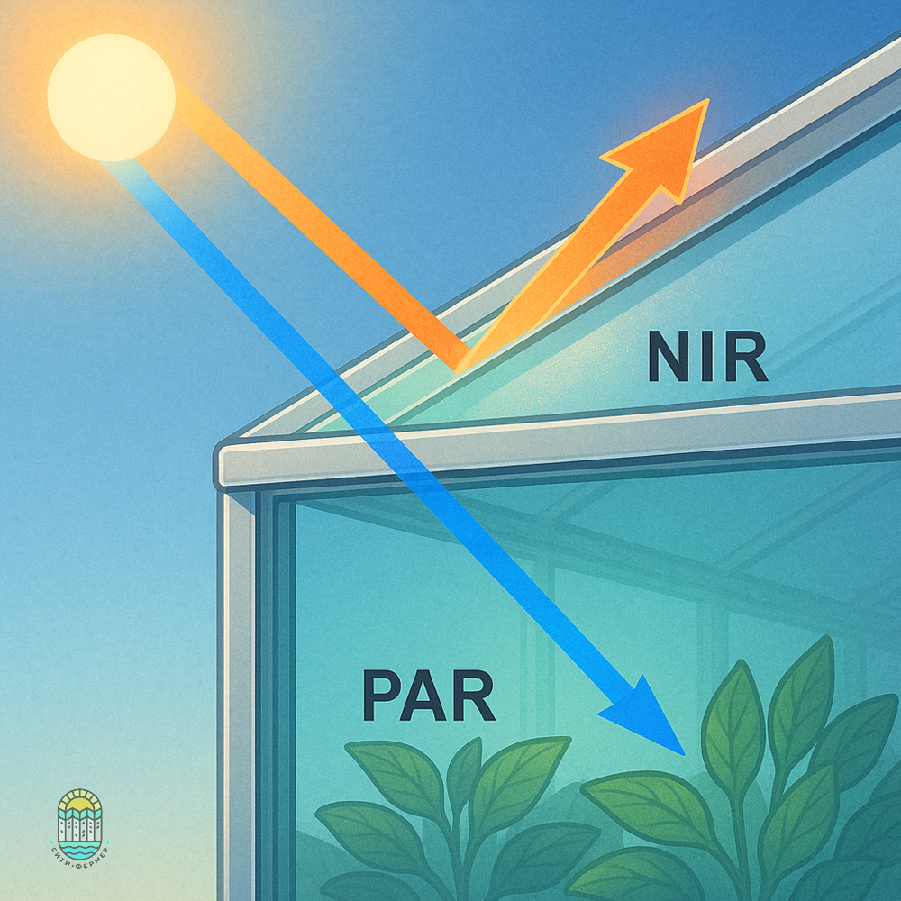 Так появились фотоселективные покрытия — материалы, которые пропускают PAR, но отражают или рассеивают ИК, задерживая тепло на входе.