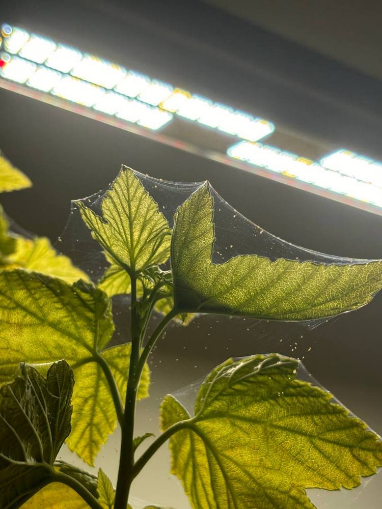 - Тонкая паутина, особенно в пазухах листьев и на нижней стороне — тревожный звоночек.