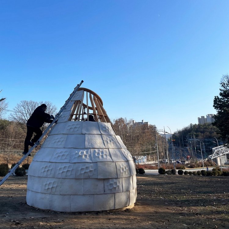 Пионер биоархитектуры с использованием мицелия Ён Джу Ли выращивает в кампусе Сеульского национального университета науки и технологий (Южная Корея) «Mycelial Hut», совмещая роботизированную 3D-печать с биологическим ростом. Цель проекта — исследовать потенциал мицелия как строительного материала для крупномасштабных работ.