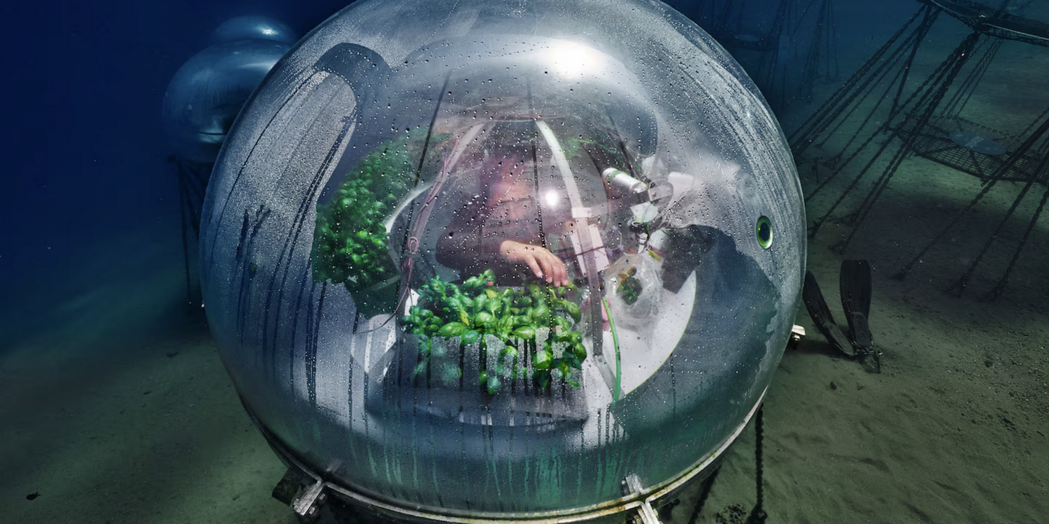 На самом деле Серджио хотел создать идеальные условия для выращивания базилика — ключевого ингредиента песто. И вот, глядя на море, он подумал: а почему бы не попробовать выращивать базилик под водой? И вот компания по производству снаряжения для дайвинга Ocean Reef Group, основателем которой является Серджио, начала экспериментировать с погружением прозрачных биосфер на глубину.